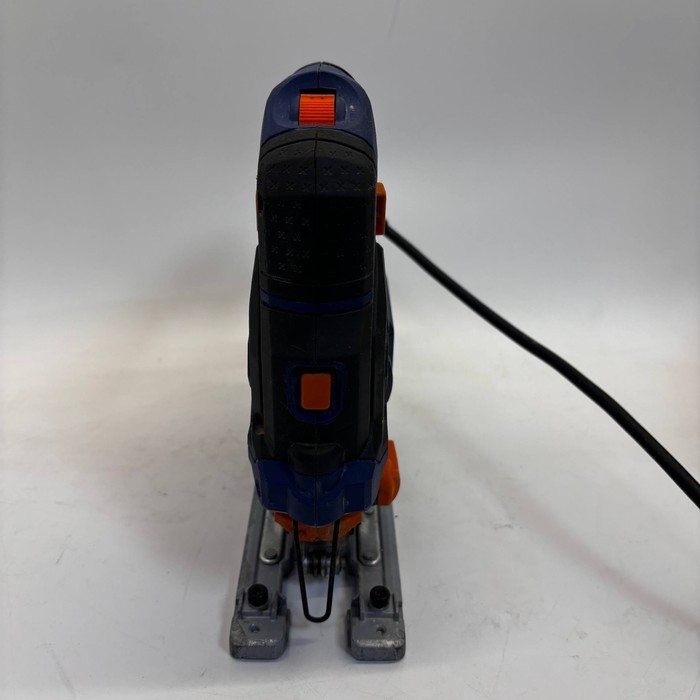 Быстрозажимное крепление пилки, возможность подключения пылесоса, защитный щиток, обрезиненная рукоятка, регулировка наклона подошвы без инструмента, сдув опилок