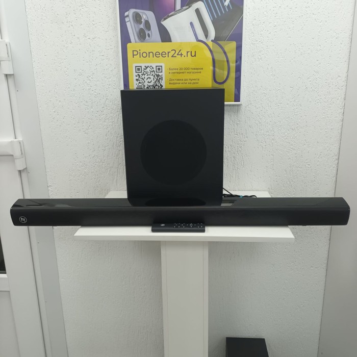 Саундбар, сабвуфер, пульт, кабель оптика, документы