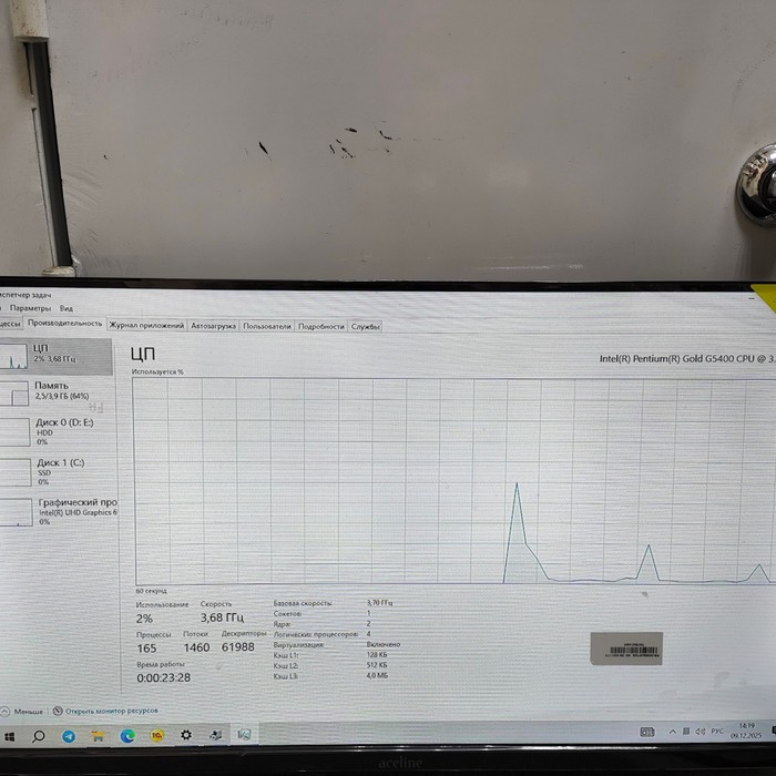 Процессор: Intel(R) Core(TM) i3-9100F CPU @ 3.60GHz