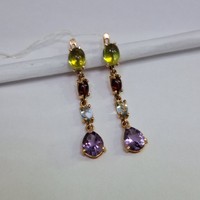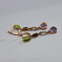Серьги: красное золото с фианитами- 2 шт. фиолетового цвета, 2 шт. голубого цвета, 2 шт. бордового цвета, 2 шт. зеленого цвета, замок английский
