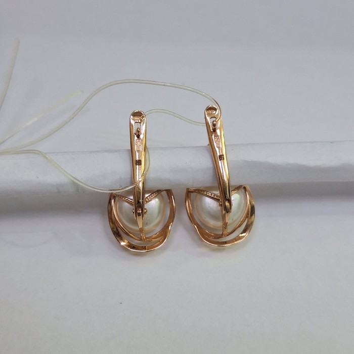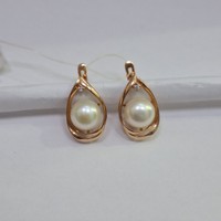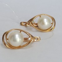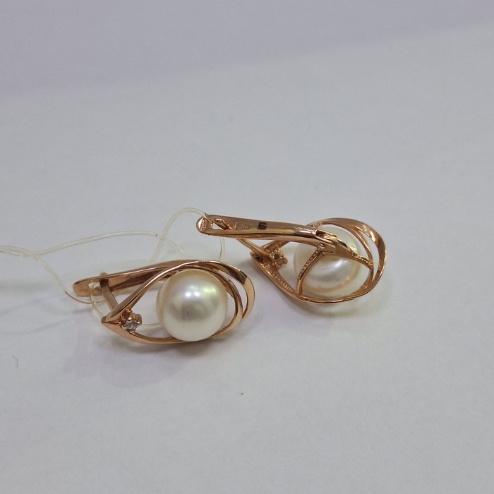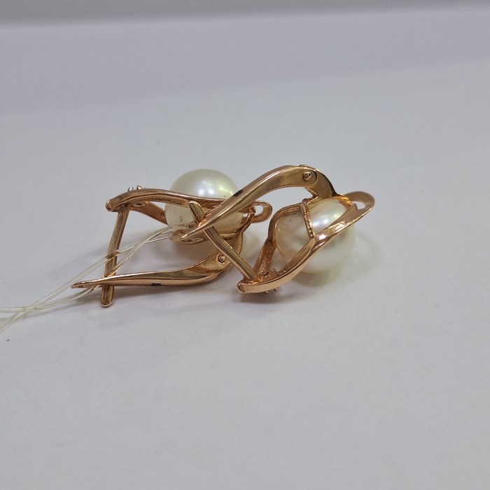 Серьги: красное золото,вставка: жемчуг- 2 шт.белого цвета,фианит- 2 шт.белого цвета, замок английский