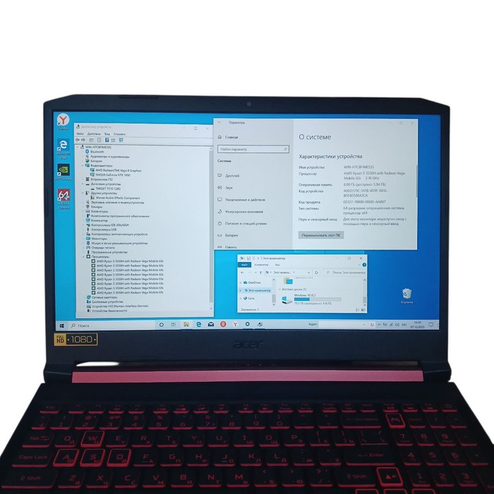 Процнссор: AMD Ryzen 5 3550H with Radeon Vega Mobile Gfx 2.10Ghz