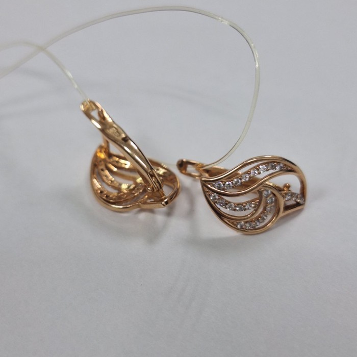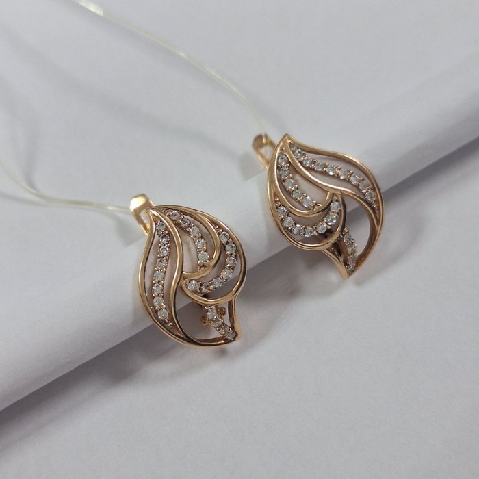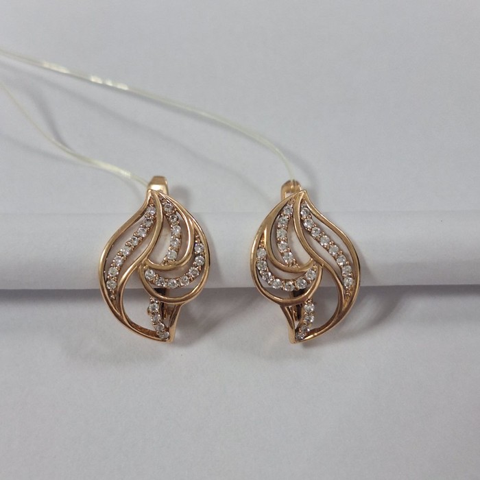Серьги женски; красное золото;английская застежка. Вставка: Фианит, цвет вставки белый, кол-во вставок 46 шт.