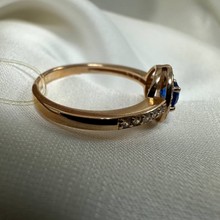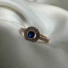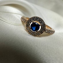 Кольцо женское; красное золото; размер 17; вставка; фианиты и камень синего цвета, кол-во вставок 26 шт