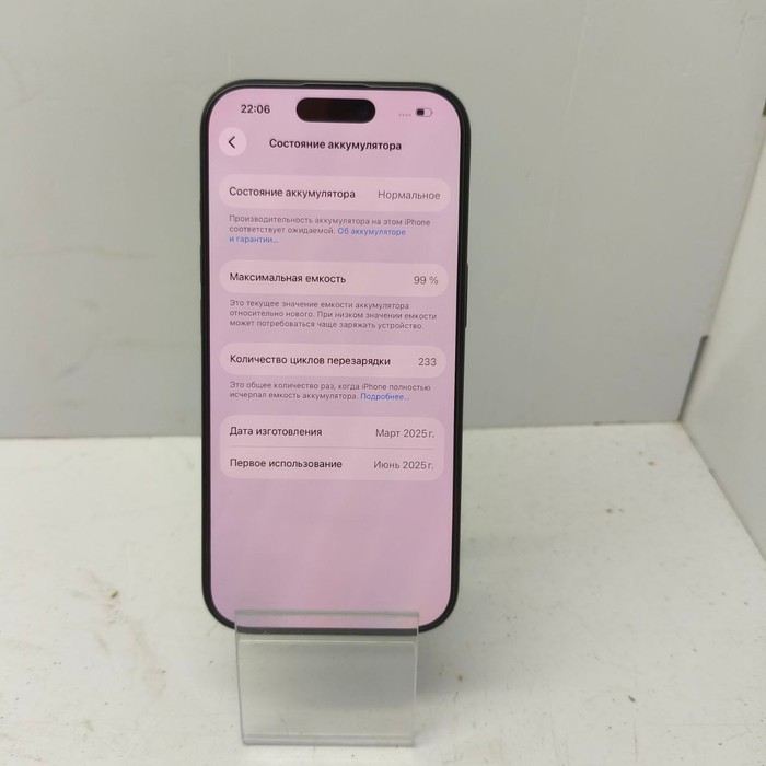 Экран. Диагональ — 6,3 дюйма, разрешение — 2622×1206 пикселей, частота обновления — 120 Гц. Технология ProMotion с адаптивной частотой обновления, True Tone, Dynamic Island.